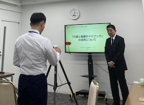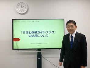 2025年度版の『介護と保健ガイドブック』も、東京消防庁の40歳を対象として行われている「ライフ・キャリアデザイン教養」の教材に採用されました。毎年、弊社団の千葉正人が参加者の方々の前で講義を行っていましたが、今回からは、受講者がオンライン上で好きなときに受講できるようにするため、講義を事前収録するかたちになりました。千葉は『介護と保健ガイドブック』を用いながら、また自身の介護の体験などを交えながら、介護に関する講義を行いました。